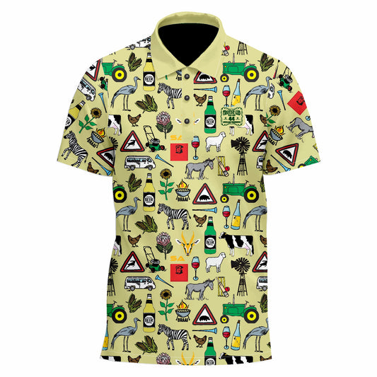 44 Klub- Built Africa Tough- Suid Afrika - Beige Printed Golf Shirt
