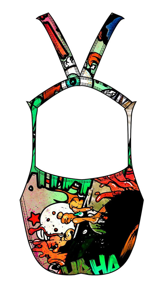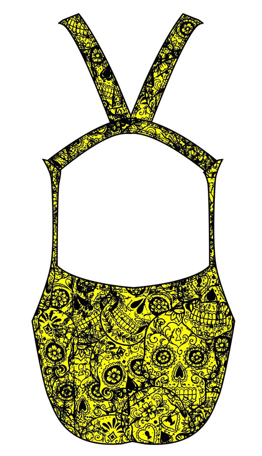 Female fastback swimsuit - Neon Mexican Skulls (2424)