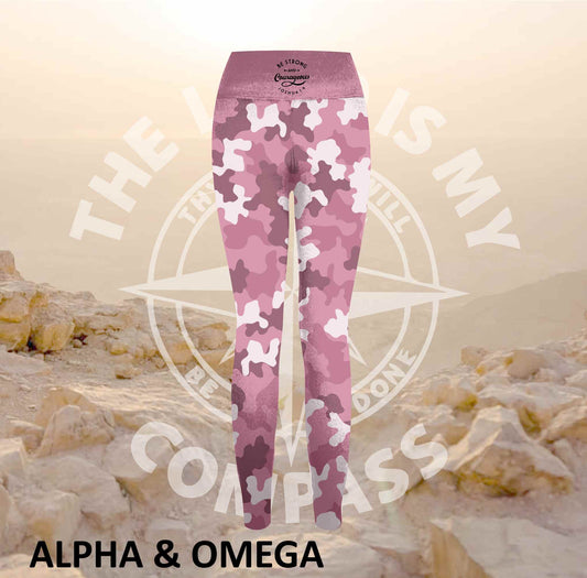 Alpha And Omega Be Strong Pink Camo Print Athleisure Tights