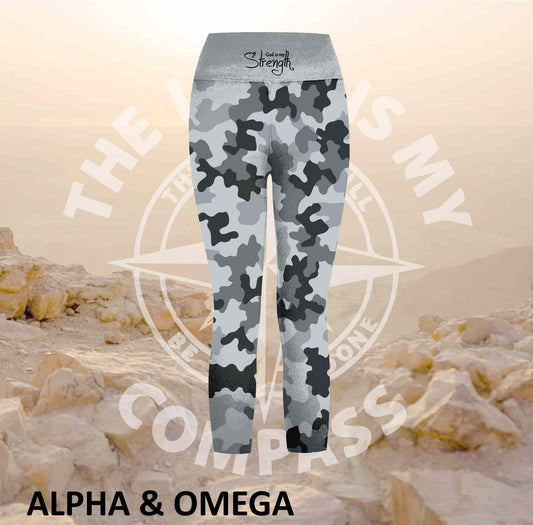 Alpha And Omega Strength Grey Camo Athleisure Three Quarter Tights