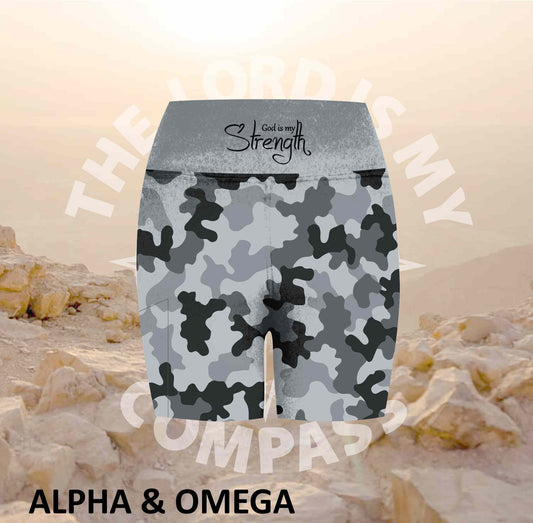 Alpha And Omega Strength Grey Camo Athleisure Short Tights