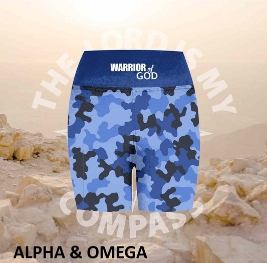 Alpha And Omega Warrior Blue Camo Athleisure Short Tights