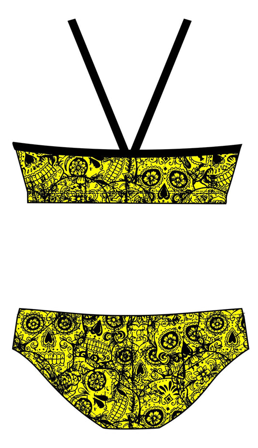 Female 2 Piece Training Bikini - Neon Mexican Skulls (2424)