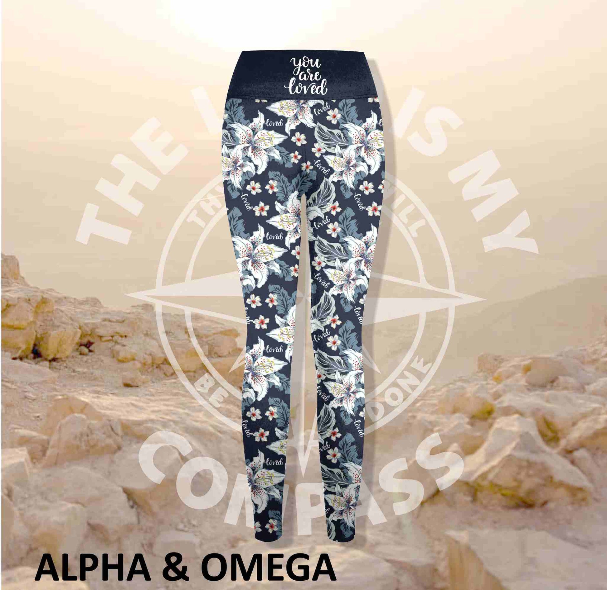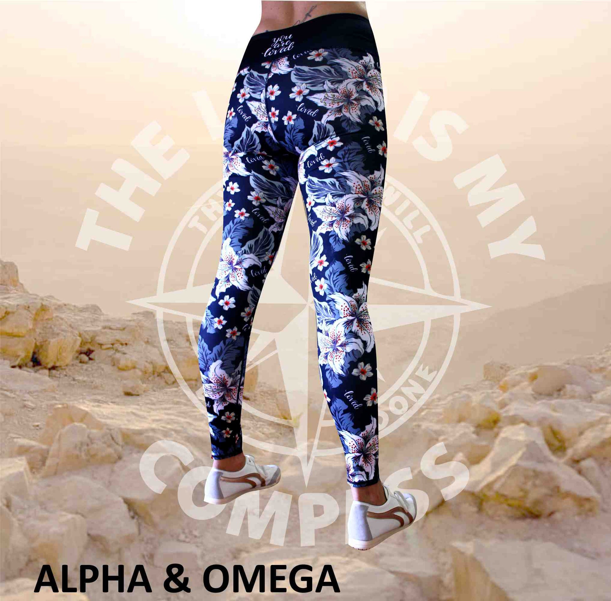 Alpha And Omega Believe Lilly Love Print Athleisure tights have a high waist with 10mm elastic inner which can be folded over, they full length tights , Made from 320g sublimation print poly spandex. All seams are flat locked.