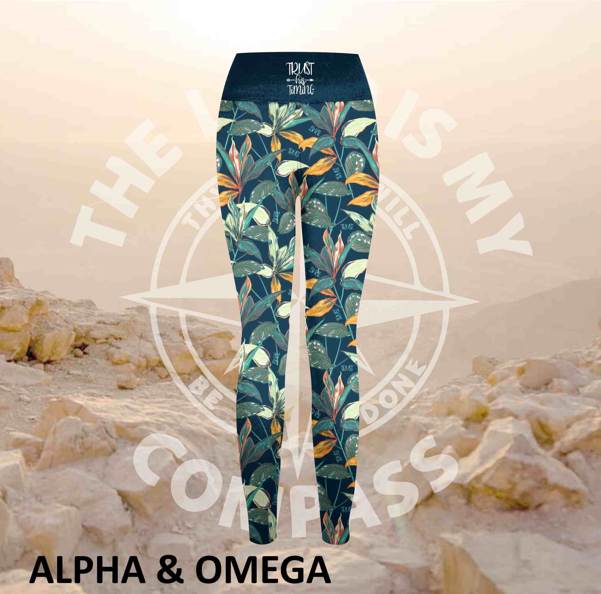 Alpha And Omega Trust his Timing Tropical Athleisure Tights have a high waist with 10mm elastic inner which can be folded over, they full length tights , Made from 320g sublimation print poly spandex. All seams are flat locked.