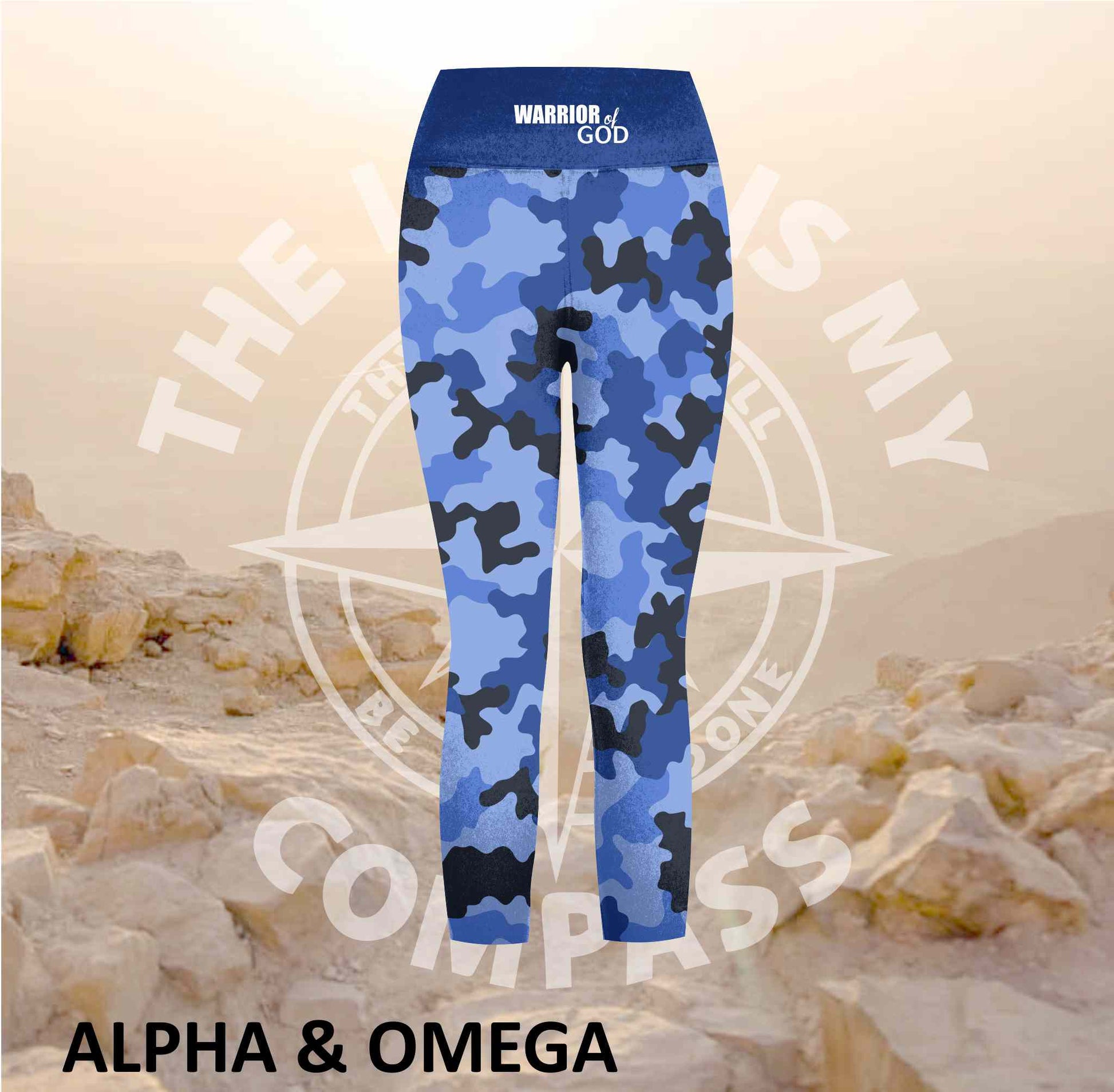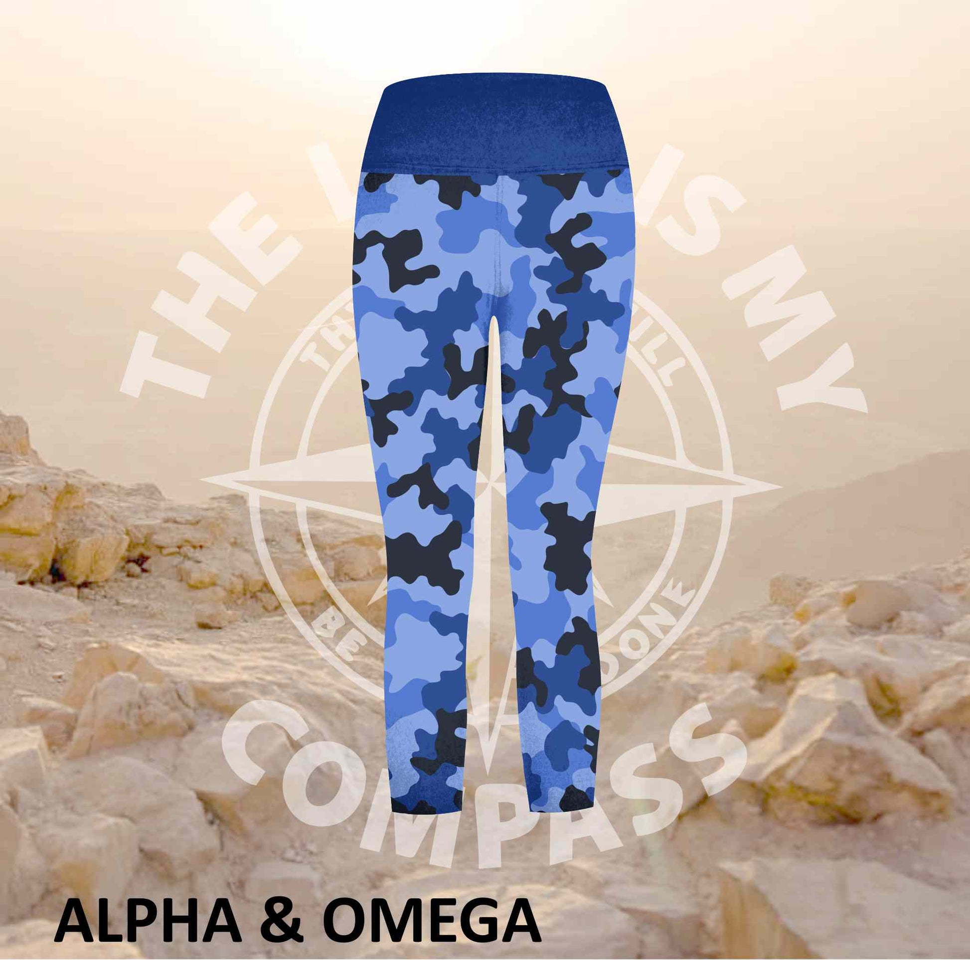 Alpha And Omega Warrior Blue Camo Athleisure Three Quarter Tights
