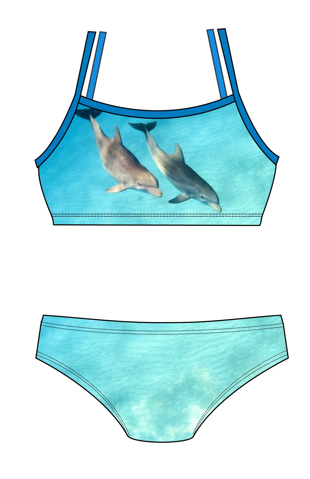 Female 2 piece training bikini - Dolphin Twins -Nom de Plume