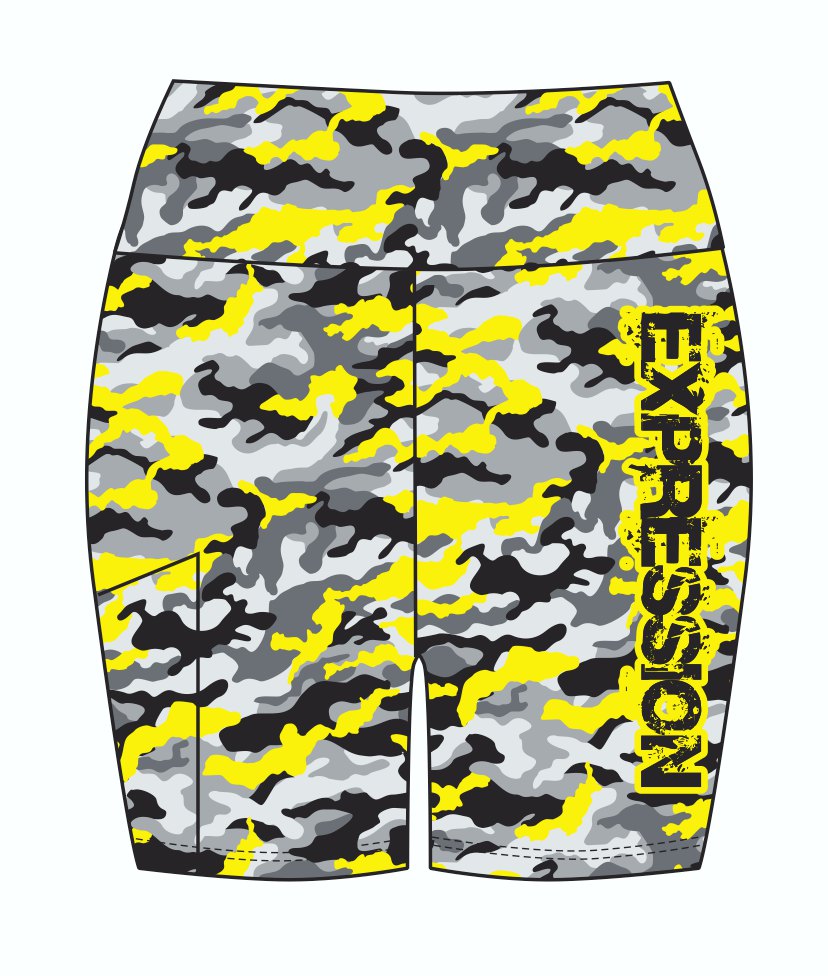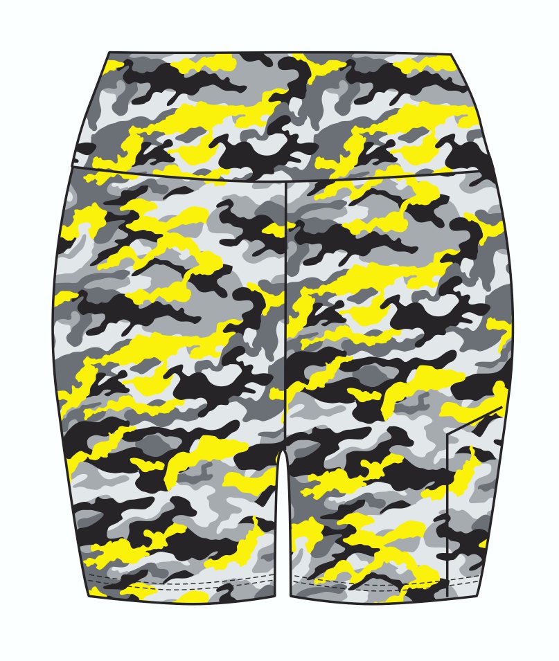 Female Short Tights, sublimation printed on poly spandex with side pocket and high waist.