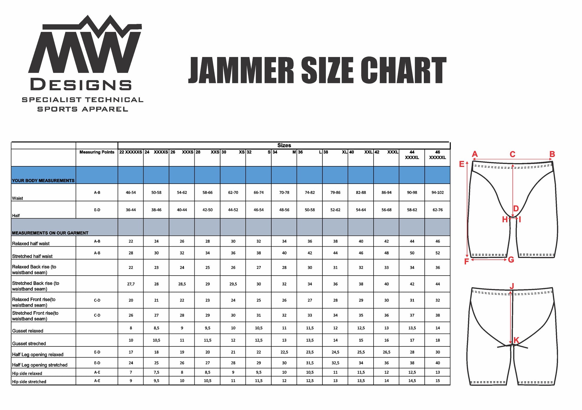 Briefs Use Our Waist Measurement from Our Jammer Size Chart.