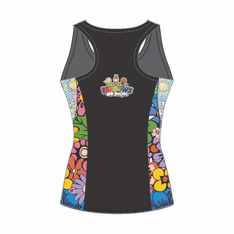 Rainbows & Smiles Female run vest with moisture management DNS, breathable side inserts and flat seams for chaff resistance.