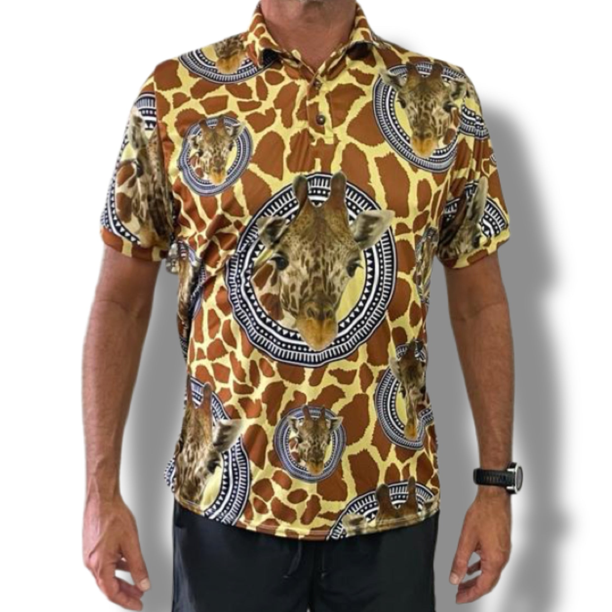 Introducing our Mens' Golf shirt, featuring a striking ethnic print in Giraffe pattern.